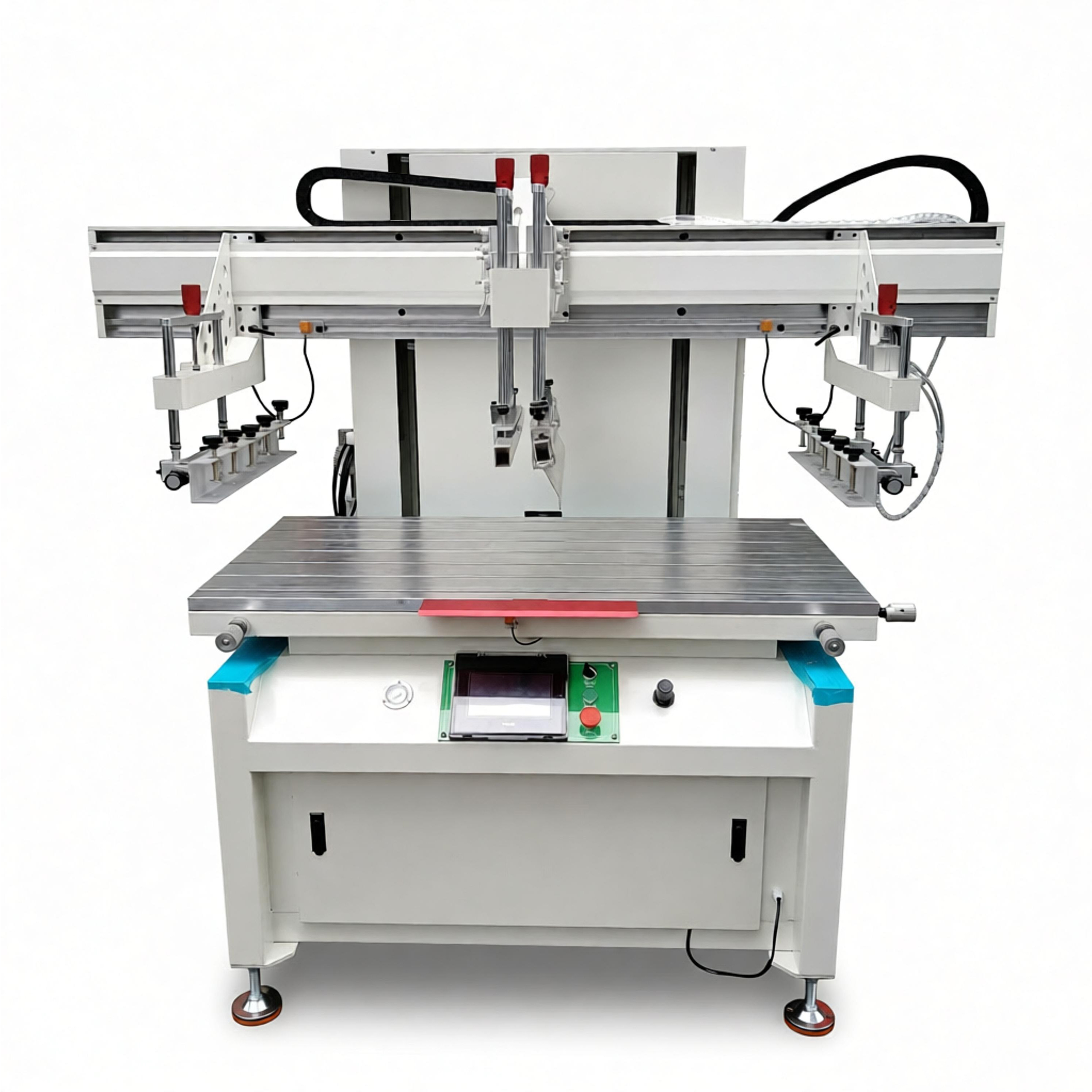针对金属柜门板量身打造的 60120SF-T 是一款高性能半自动丝网印刷机,其核心优势在于: